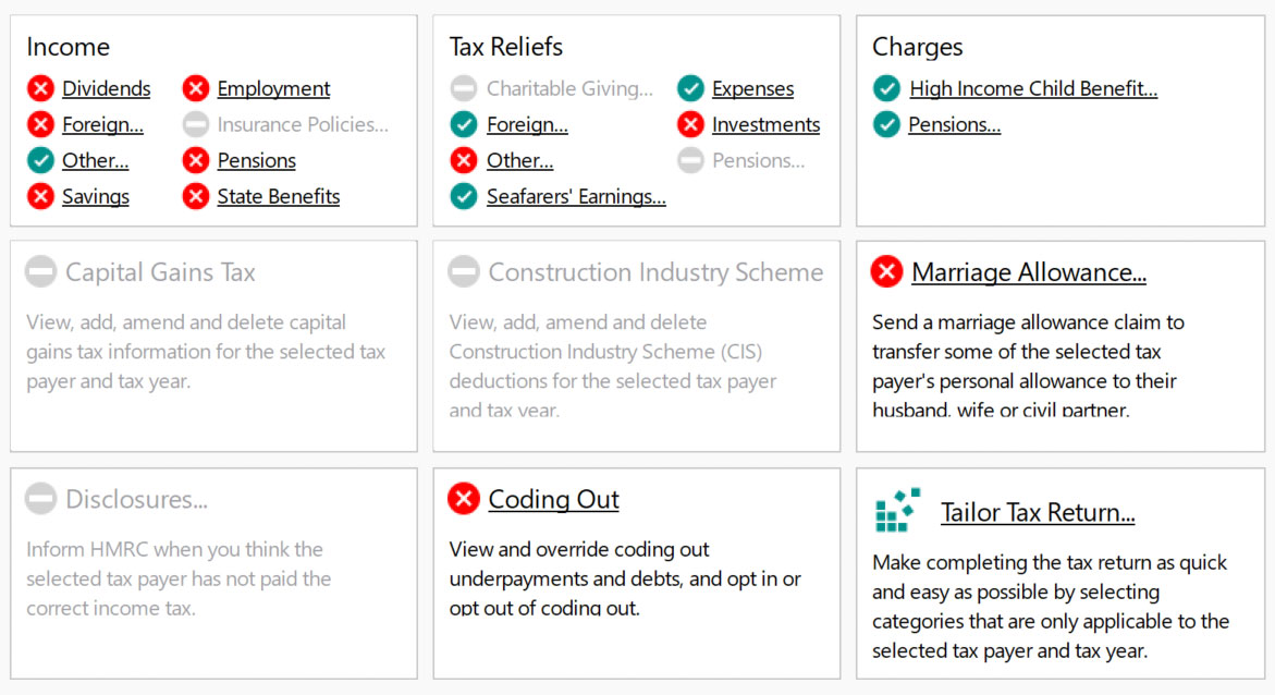 Report your personal income, tax reliefs, deductions, marriage allowance, CIS deductions,